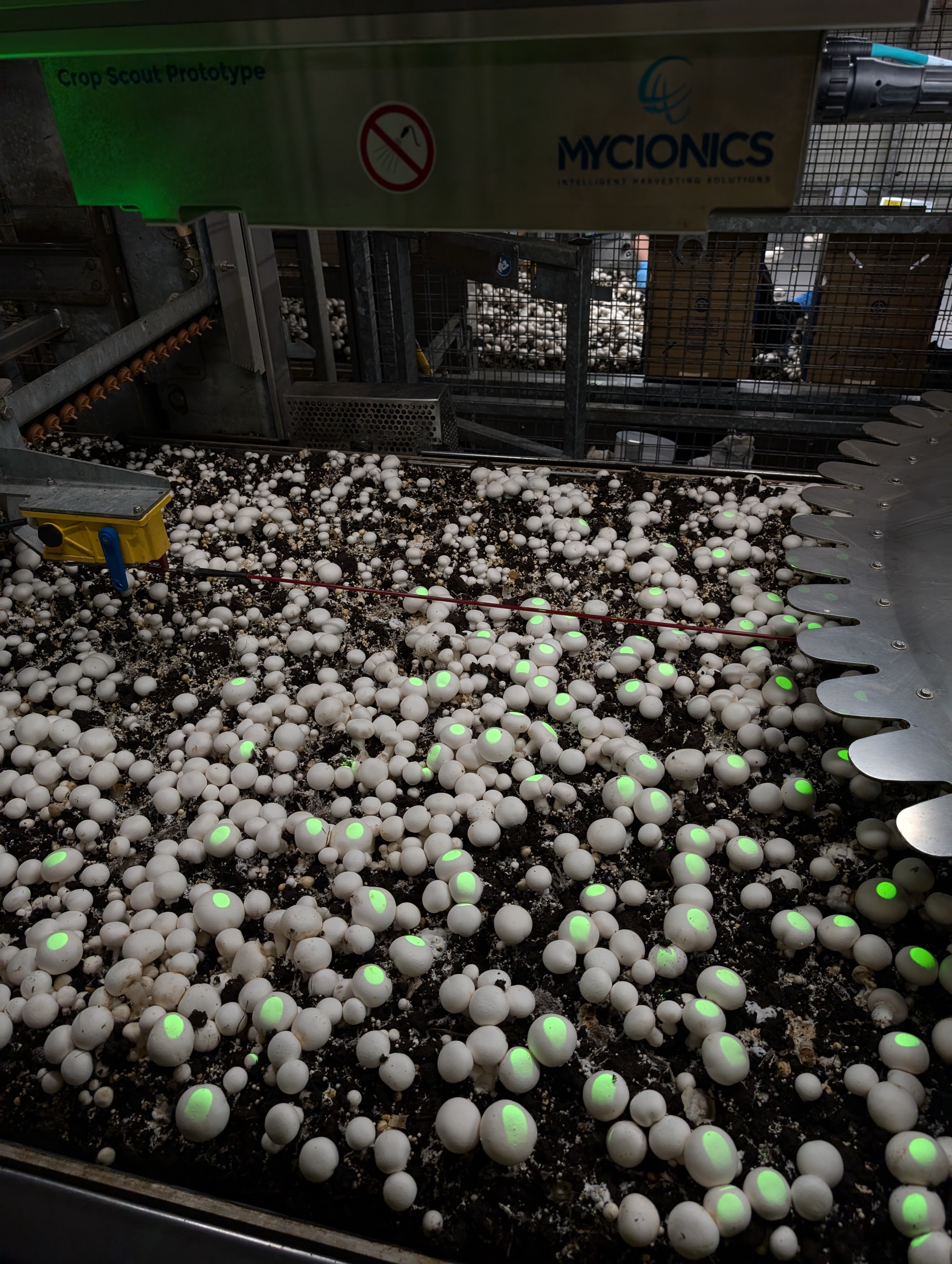 Pre-harvest scanning maps pinned beds, tracks growth over time and predicts when and where harvesting should begin and how to adjust environmental factors to boost yield. Crop Scout guidance points human pickers to the mushrooms that should be harvested first, eliminating guesswork and increasing efficiency.