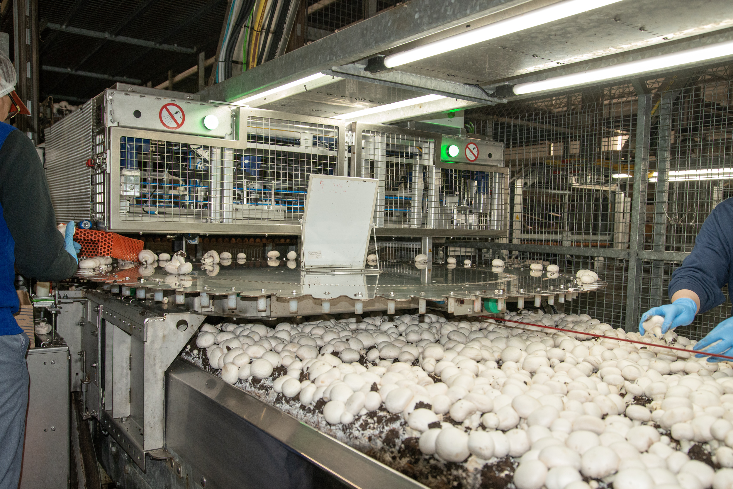 Robotic harvesting units mounted on drawers or lorries can handle large volumes, placing mushrooms onto belts, conveyance systems or directly into containers. During short, intense flush periods, humans can work alongside the robots to temporarily increase capacity during separation.