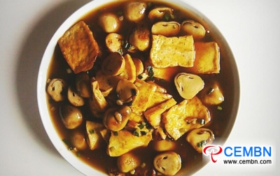 5. Heat the wok again and drizzle with a little oil, then drop in Straw mushrooms and stir over fierce flame for 2-3 minutes. After that, drop in fried tofu slices.
